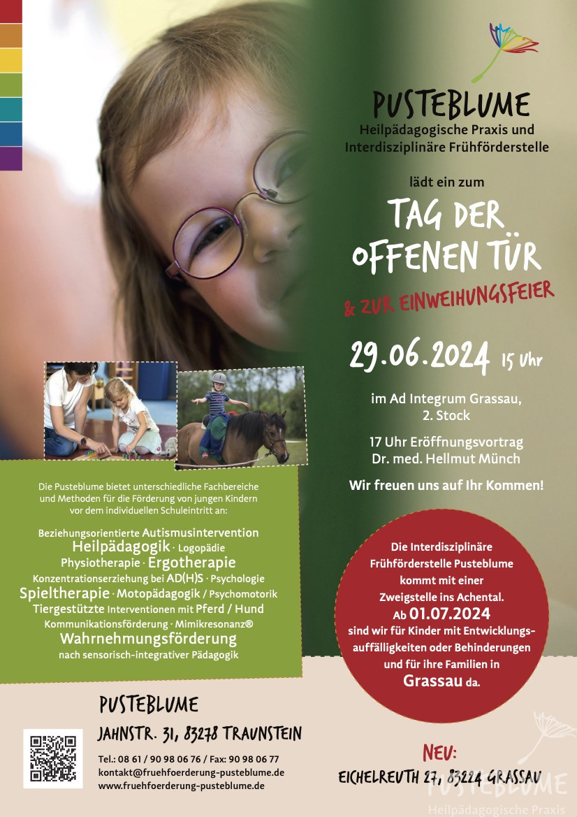 Wir eröffnen eine Zweigstelle in Grassau im neuen Ärztehaus und freuen uns sehr, jetzt auch im Achental für unsere Eltern und Kinder mit eigenen Räumlichkeiten vor Ort sein zu können.